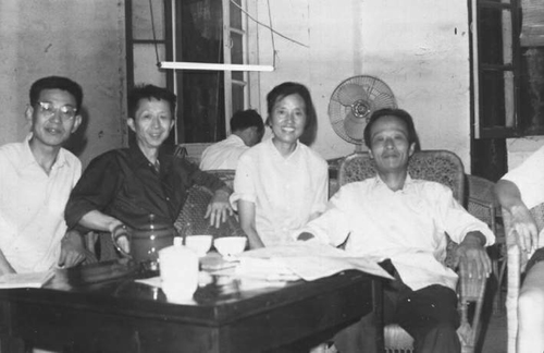 1979年10月,《星星》詩刊復刊后之辦公室。中間放一茶桌,為接待客人及詩友之用。從左至右為白航、流沙河、曾參明、陳犀。