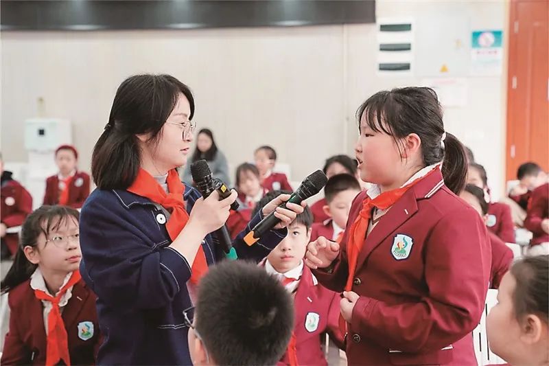 2024年3月14日,受陜西省委宣傳部、陜西省作家協(xié)會(huì)邀請(qǐng),劉芳芳(左)在西安碑林區(qū)建國(guó)路小學(xué)進(jìn)行科普科幻公益講座。作者供圖
