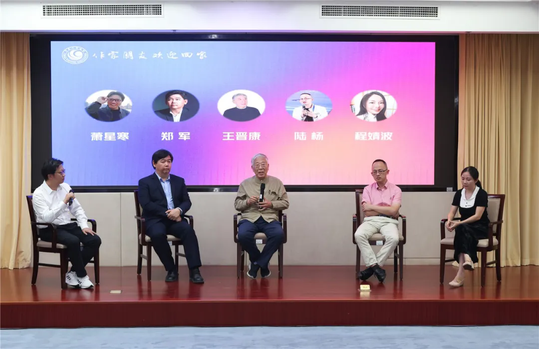 在由蕭星寒主持的對談環節,王晉康、鄭軍、陸楊、程婧波圍繞是否使用過AI探索創作、AI主導文學寫作、AI發展前瞻等話題各抒己見,交流看法。作家們都曾對AI進行過了解和試驗,在文學寫作中也有過一定嘗試,但大家達成基本共識,雖然AI可以模擬人類的語言風格和表達方式,但它缺乏真正的情感體驗和生命感悟。“從樂觀的角度看,有一點它永遠取代不了”,王晉康說,鮮活而藝術的生活經歷,是造就頂級文學家的必然條件。目前AI還并不具備,因此,無論AI如何發展,都無法完全取代人類在文學創作中的核心地位。相反,我們應該將AI視為一種工具和伙伴,用它來輔助我們更好地挖掘內心的世界,表達獨特的情感和思想。在AI語境下,文學接受的方式也在發生著翻天覆地的變化。