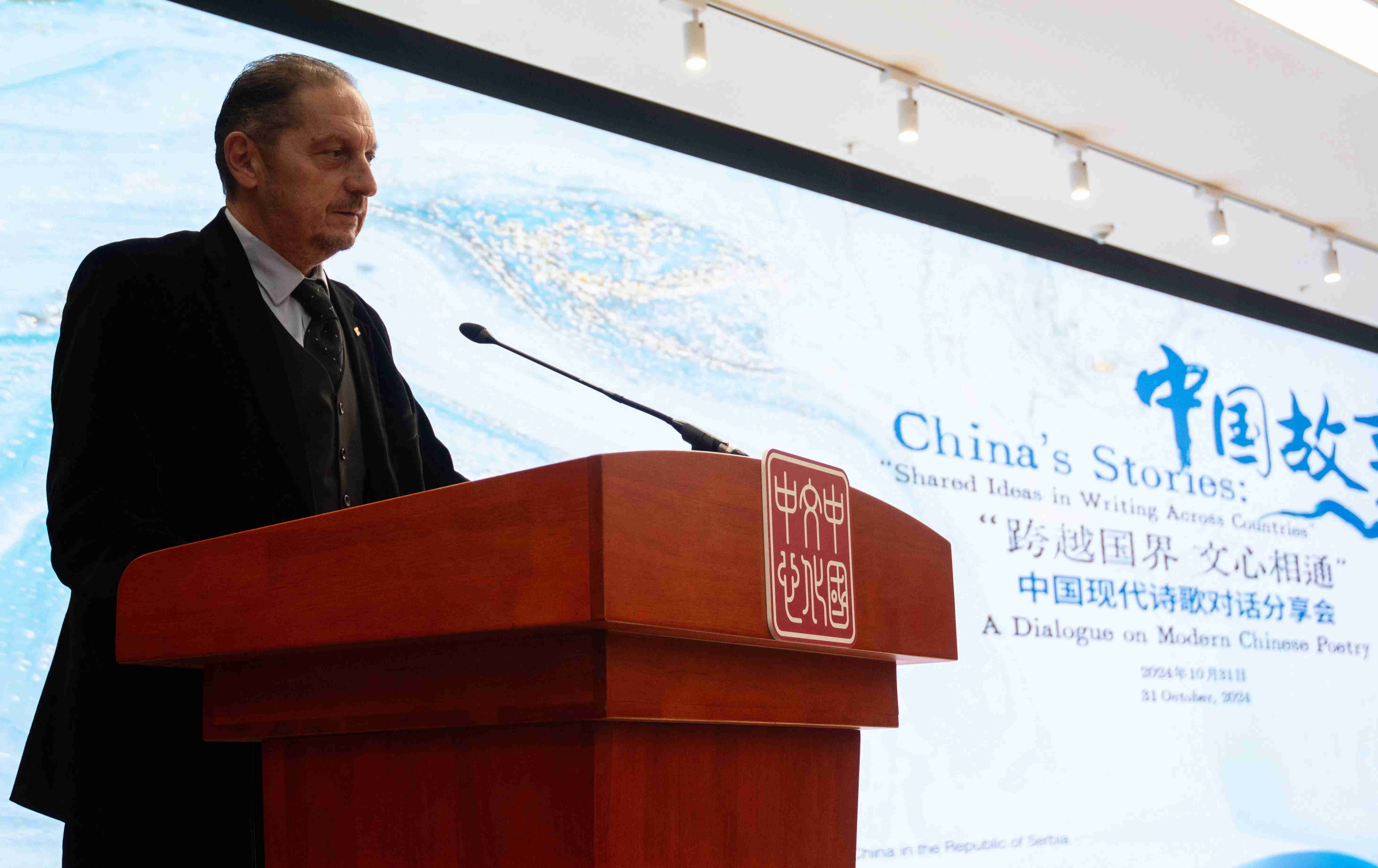 10月31日,由中國作家協(xié)會、中國駐塞爾維亞使館指導(dǎo),塞爾維亞中國文學(xué)讀者俱樂部、貝爾格萊德中國文化中心、中國圖書進出口(集團)有限公司承辦的“跨越國界·文心相通”中國現(xiàn)代詩歌對話分享會在貝爾格萊德中國文化中心成功舉辦。由中國作協(xié)副主席、書記處書記邱華棟,作家雷平陽、沈葦、李宏偉和戴濰娜組成的中國作家代表團與塞爾維亞讀者代表等150余人深入交流,暢談文學(xué),共敘友誼。