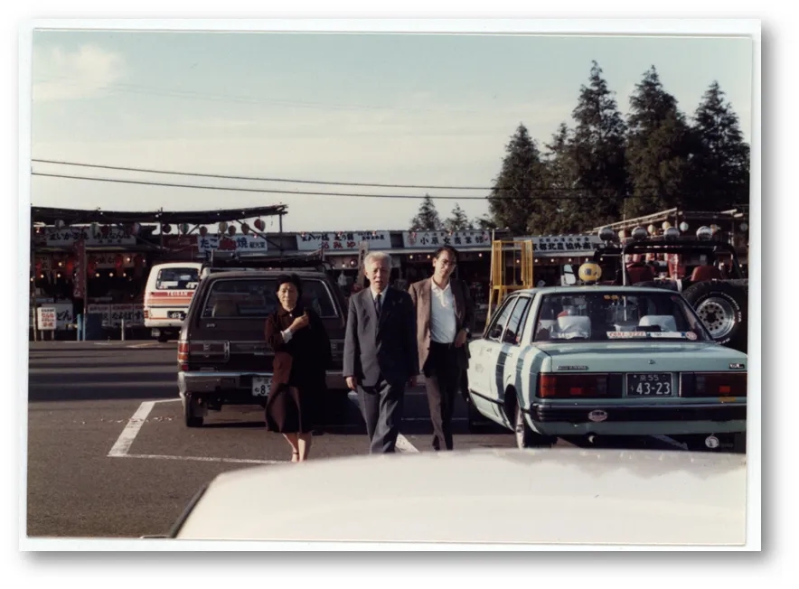 另一份錄音也很特別,它是王瑤1985年去日本時的講座,里面有日語的翻譯。這次和日本有關的,還有一些因為篇幅最終刪去的素材。專檔中的照片里,有相當一部分是1985年這次在日本拍攝的,多是抓拍,而非站定了擺好姿勢的合照。停車場中的一張,王瑤和隨行兩人直面鏡頭,衣角皆在空中,毫無疑問是在行走中拍攝的,有一種電影劇照的氣質。