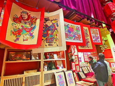 室內廟會街市上的各式年畫吸引著人們的目光。本報記者 田呢攝/光明圖片