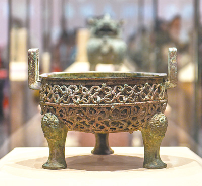 春秋時期蟠蛇紋鏤空鼎。