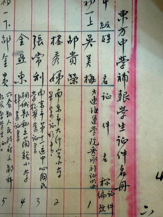 手寫《南京東方中學(xué)補(bǔ)報(bào)登記名冊(cè)》(1952),筆者收藏