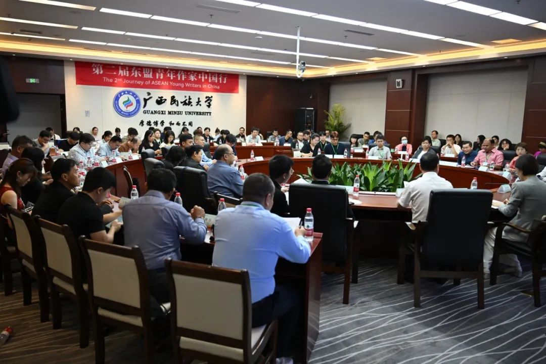 啟動儀式后舉行了中國—東盟青年作家交流座談會。緬甸作協主席吳翁貌,柬埔寨作協主席布隆布拉尼,《南方文壇》副主編曾攀,馬來西亞《馬華文學》執行編輯王晉恒,新加坡作家周德成,菲律賓華文作家協會理事蔡友銘,泰國作家賈薩尼·泰頌提,青海省作協副主席索南才讓,越南芝文化股份公司創始人、總經理阮麗芝,廣西民族大學東語學院印尼語系外教林建杰,老撾辛賽青年作家俱樂部成員安瑪達·托沙賴,廣州文學藝術創作研究院專業作家陳崇正先后發言。