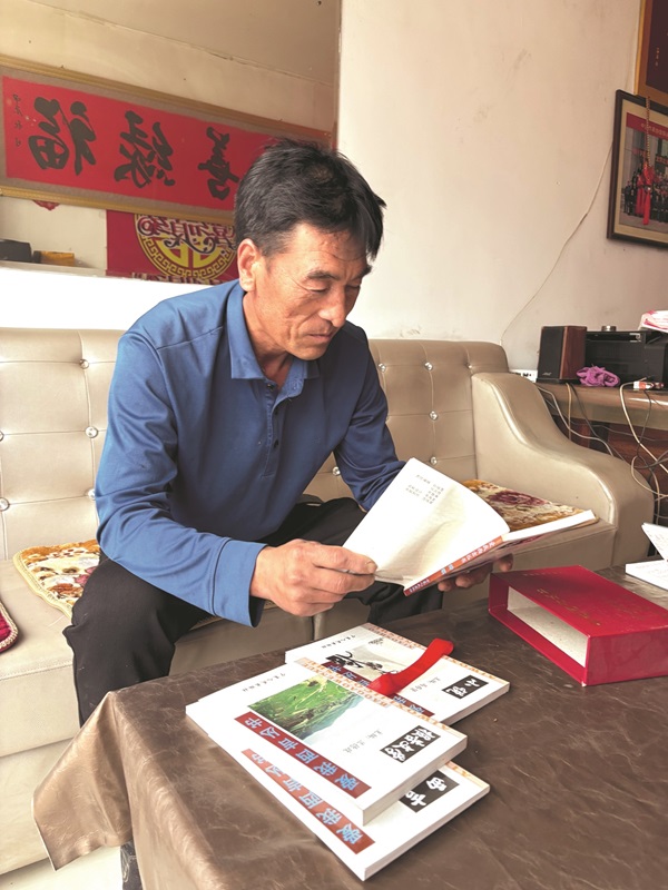 咸存福的家有一個四四方方的小院,院內綠樹掩映。然而,步入略顯簡樸的客廳,屋內的景象卻令人印象深刻。房間左側,倚墻而立的是半面墻的書柜和一張書桌。桌上,一臺筆記本電腦的觸控板兩側,被長期使用磨出了兩個極其醒目的油亮手印,無聲訴說著主人的勤奮。與之相對的房間右側,一個書架上整齊陳列著從第一屆到第十屆的所有茅盾文學獎獲獎作品。面對記者,咸存福和他的父親咸順利分享了他們的故事。