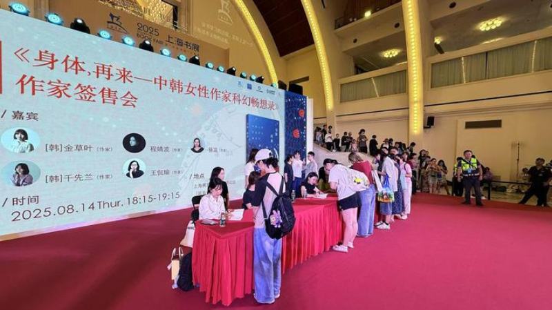 8月14日,中韓女性科幻作家現場簽售會在2025上海書展中心活動區舉辦。(受訪機構供圖)