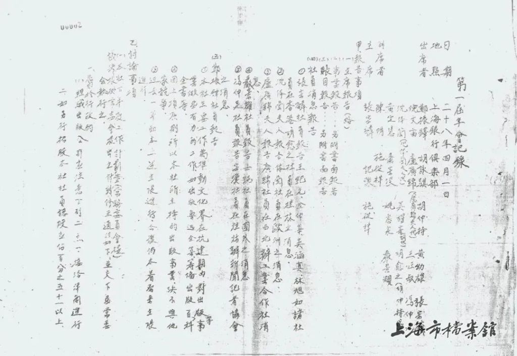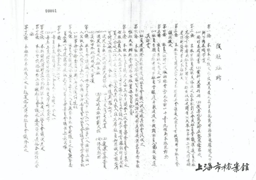 幸運(yùn)的是,上海市檔案館保存有兩件復(fù)社的原始檔案,可窺一斑。檔案一為復(fù)社社約,一為復(fù)社第一屆年會記錄(1939年4月1日)。