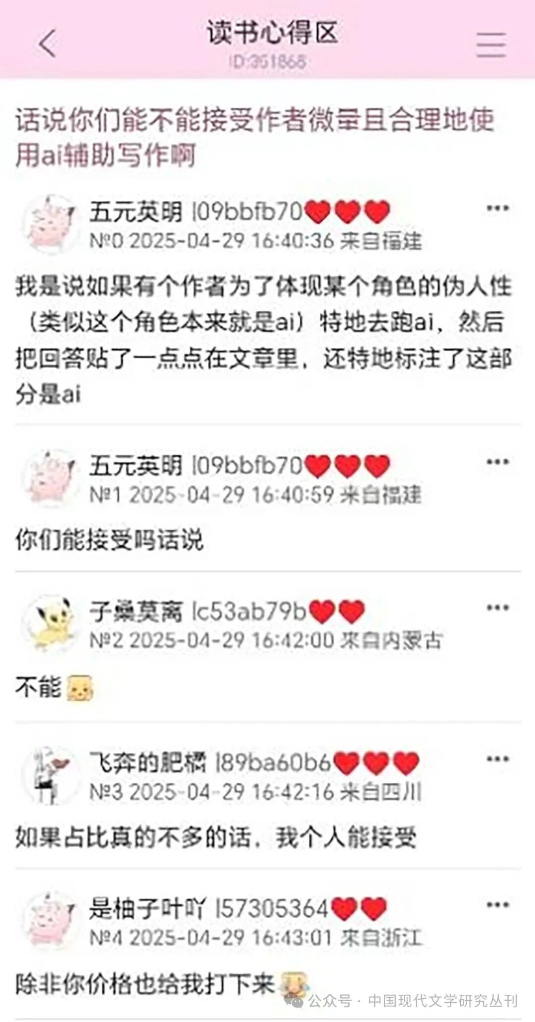 晉江文學城的讀者們對能否接受作者使用AI輔助寫作的探討