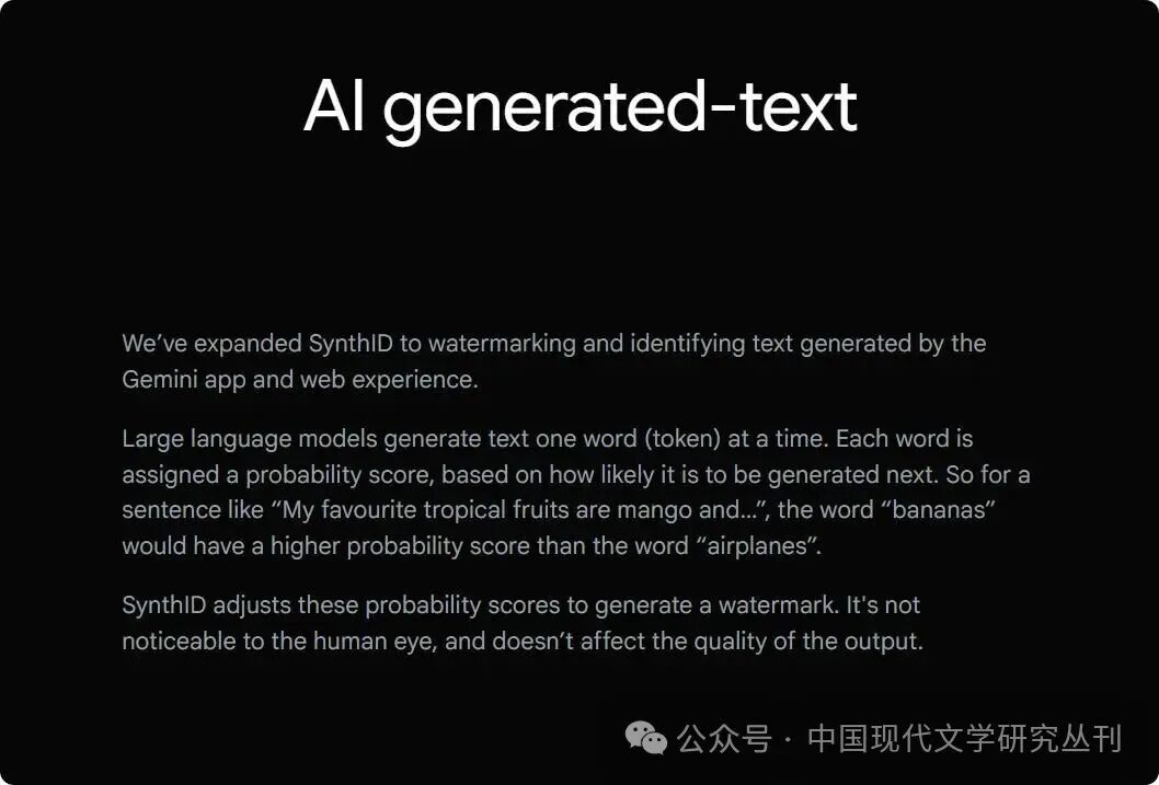 在創作規范日漸達成共識之后,如何有效識別并管控AI參與網文創作,就成為平臺和作者共同面臨的下一道難題。令人意外的是,相比于慶幸各個網文平臺出臺的管控舉措使之在“人機對抗”中扳回一城,網文原創作者們更關切的其實是AI識別的可行性,以及由此帶來的潛在風險。例如,在晉江宣布AI參與創作的界限之后,該公告的討論區里不乏“真的不會誤判造成冤假錯案么?那些鑒定都不太靠譜,有點憂慮”[30]之類的質疑聲。由此可見,AI創作浪潮中核心矛盾的指向,已經悄然轉向對AI檢測技術信度的懷疑。當前,用于文本類內容檢測的AI識別技術,主要可分為兩大類:一類是從結果出發,即通過AI檢測工具識別文本中可能的“AI味”;另一類則是從源頭入手,在AI文本生成的過程中嵌入某種“水印”標識,用以追蹤與鑒別。當前AI生成文本雖已能夠自如地模擬自然語言,但在涉及長文本的內容生成任務中,其語言構成依然表現出一定的傾向性,比如高頻詞語的固定化選擇、句式結構過于工整、語義邏輯的突然跳躍等。這些細節通常不容易為人眼所察覺,但訓練有素的大模型卻可以在“統計”層面發現這些“非人類”的規律。以騰訊公司于2025年1月推出的“朱雀大模型檢測”為例,其在官方網頁中介紹,“文本檢測中,LLM通常以低困惑度和突發性編寫文本”,因此朱雀在經過使用“海量AI生成的數據和真實數據進行模型訓練”后,可通過先進的文本檢測算法等進行文本的識別與鑒定。[31]然而,這類檢測存在局限性。朱雀在其頁面介紹中就明確指出,在人類語言系統中廣泛存在著通用表達方式與結構化寫作規范,為AI的學習模仿提供了天然土壤,這一特性在網絡文學等特定文體中表現得尤為顯著。在處理這類文本時,“由于AI生成的文本和人類創作的文本在語言、情節結構上非常相似,這極大地增加了檢測難度,極易引發誤報”[32]。另一類“水印”式檢測技術,即指在保持可讀性與流暢性的前提下,在文本生成階段就有意嵌入非扭曲水印,為其烙上“看不見的指紋”。Google DeepMind團隊開發的SynthID-Text工具,就是這一領域的代表性探索成果之一,且已成功應用于Gemini和Gemini Advanced等系統。[33]值得一提的是,這類檢測技術并不依賴于外部語料的比對,因而具有更強的可追溯性。不過,它也并非萬全之策。只有當生成的文本未被人為二次干預時,植入的水印才能保持完整。但在實際的網文創作過程中,即使選擇使用人工智能進行輔助,大部分寫手也會對生成內容進行校正、修改等,水印的可識別性很容易被破壞。除此之外,考慮到各類人工智能大模型的權限問題,這類檢測技術尚未能實現大規模的部署和應用。不論如何,這兩類AI文本檢測工具在其設計邏輯上,本身就包含著一種自反性的悖論,它們的有效性始終依賴于AI自身的不夠好。一旦AI足夠聰明,可以模仿甚至反向預測檢測技術的運作邏輯,那么后者將很快失效。