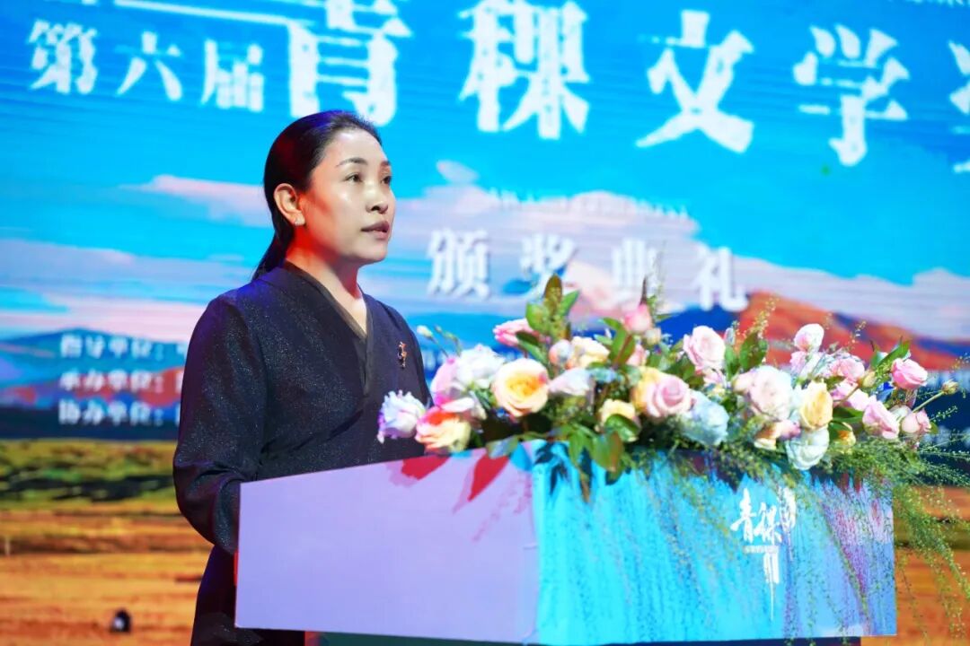 依當措在致辭中說,青稞生于苦寒,長于風霜,卻結出滋養生命的果實。以它命名的文學獎,亦承載著在蒼茫高原之上,寂靜生長,文字如穗,漸成信仰的精神。阿壩州地處青藏高原東南緣,是全國唯一的藏族羌族自治州。這里有“童話世界”九寨溝、“人間瑤池”黃龍、中國戶外第一山——四姑娘山、若詩若畫若爾蓋大草原、東方的魔幻世界蓮寶葉則等世界知名景點,是全球擁有世界自然遺產數量最多的地區之一,是生態文明示范地、長江黃河上游重要的生態屏障和水源涵養區。這里是多彩人文綻放地。紅軍長征在阿壩創造了駐留時間最長、召開重要會議最多、軍民關系最濃厚等“七個之最”,留下了“牦牛革命”的動人詩篇。全州擁有羌年等4項世界級非遺,有各類不可移動文物2132處,國家級非遺項目23項、省級非遺項目101項,被譽為“民族文化大走廊”“露天歷史博物館”。這里,是文旅發展引領地。黃龍成功入選世界自然保護聯盟綠色名錄,成為全球最佳自然保護地之一,桃坪羌寨是全省唯一的世界最佳旅游鄉村。誠摯邀請各位作家老師們,常來阿壩行走、采風、書寫。讓你們的筆觸,深入牛羊漫步的牧場、阡陌縱橫的山村,真正走進各族群眾火熱的現實生活,走進高質量發展的生動實踐,講述阿壩的故事,讓更多的人通過文學作品了解阿壩、認識阿壩、走進阿壩、愛上阿壩。