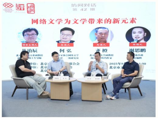 近年來,網(wǎng)絡(luò)文學(xué)作品量質(zhì)齊升,積極突破“升級打怪”的固化模型和“爽感至上”的敘事邏輯,轉(zhuǎn)向更復(fù)雜的人物塑造、更深沉的情感表達(dá)以及對現(xiàn)實(shí)的觀照。9月16日,由北京市文聯(lián)主辦,北京文藝評論家協(xié)會、北京作家協(xié)會承辦的文藝評論系列學(xué)術(shù)對談活動“坊間對話第42期:網(wǎng)絡(luò)文學(xué)為文學(xué)帶來的新元素”在北京市文聯(lián)藝術(shù)工坊舉辦。活動邀請北京大學(xué)中文系副教授、研究員、博士生導(dǎo)師叢治辰擔(dān)任學(xué)術(shù)主持,中國作家協(xié)會網(wǎng)絡(luò)文學(xué)中心主任何弘,北京師范大學(xué)經(jīng)濟(jì)與工商管理學(xué)院副教授、閱文集團(tuán)簽約作家齊橙,番茄小說總編輯謝思鵬,就網(wǎng)絡(luò)文學(xué)經(jīng)典化路徑等話題展開對談。