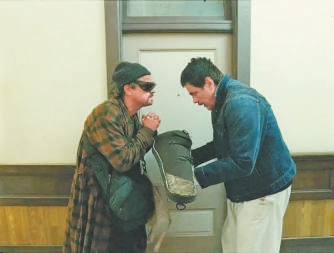 而受人敬仰、被眾人擁護(hù)的革命前輩鮑勃,已不是“躺平”而是“攤平”了。他轉(zhuǎn)移到巴克十字鎮(zhèn)避難十六載,革命斗志全無,常年沉溺毒品和酒精,以至于連接頭暗號都忘干凈,逃亡路上只剩下倉惶與失態(tài),甚至連真相都不配知曉,最終淪為導(dǎo)演的搞笑擔(dān)當(dāng)。