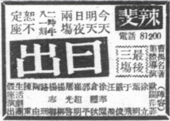 圖二:《申報》的《日出》演出廣告,1946年7月27日