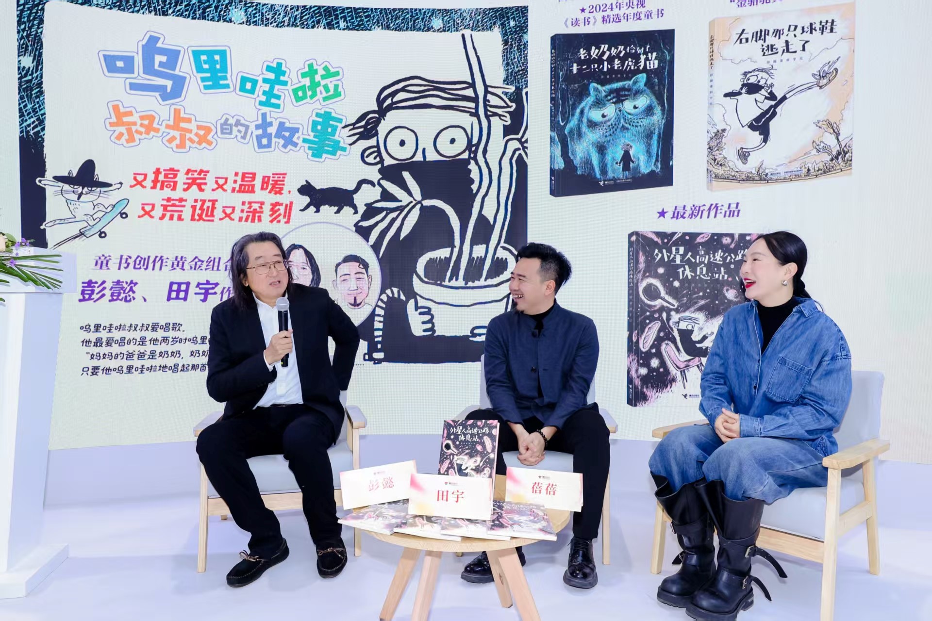 1月10日,第38屆北京圖書訂貨會期間,接力出版社在廣西出版傳媒集團展位舉辦了“打開閱讀和想象之門——彭懿、田宇《外星人高速公路休息站》新書發布會”。作為童書界備受矚目的黃金創作搭檔,作家彭懿與畫家田宇來到現場,向大小讀者生動解讀新書充滿奇思妙想的故事內核與極具沖擊力的畫面設計,分享創作過程中的趣味軼事引發廣泛關注與熱烈互動。本次活動特別邀請壹蓓子繪本創始人鄒蓓蓓擔任主持人,為發布會增添更多專業視角與溫馨氛圍。