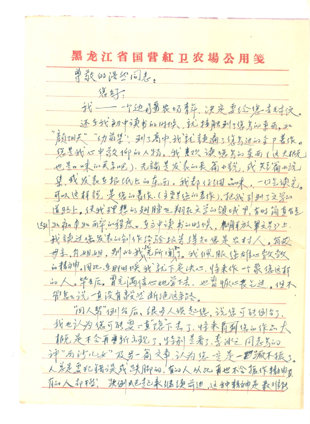 [11]“一個文學愛好者”1979年3月9日信。