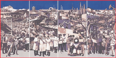 版畫(huà)《沸騰的中國(guó)》,作者孔國(guó)橋、魯利鋒、周崇漲、王克景