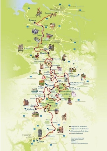 親愛的讀者們,可以肯定的是:格林童話有多種不同的來源。尤其是那些最為著名的故事,往往并非典型的“德國故事”,而更像是歐洲范圍內流傳的敘事素材。盡管如此,我們德國人依然不愿放棄屬于我們的格林童話。若想親身感受格林兄弟曾經生活與工作的那片土地所特有的氛圍,不妨踏上德國童話之路(https://www.deutsche-maerchenstrasse.com/en/german-fairytale-route-cn),親自走一走、看一看。這條路線從兄弟二人的出生地哈瑙出發,一直延伸至以著名的“城市樂手”聞名的不來梅。