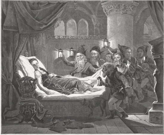 瑪格麗特的母親在三十七歲時早逝,父親隨后再婚。正如童話所描繪的那樣,瑪格麗特也有一位繼母——卡塔琳娜·馮·哈茨菲爾德(Katharina von Hatzfeld)。在她尚且年幼時,父親便將她送往布魯塞爾。此舉固然帶有政治考量,但人們普遍認為,其中也摻雜著家庭矛盾的因素。當家庭的和睦破裂時,繼母不總是被推到風口浪尖的人物嗎?1554年,這位年輕女子在遙遠的布魯塞爾去世,年僅二十一歲。關于她的死因,流言四起:她或許是被毒害的。而究竟是誰會對瑪格麗特的死亡心懷企圖?傳聞自然指向那位心生怨懟又嫉妒繼女美貌的繼母卡塔琳娜。那么,七個小矮人又是從何而來的呢?瓦爾德克附近的黑森地區,也為這一細節提供了一種頗具說服力的解釋。菲利普伯爵擁有數座銅礦,其中一座,位于距離瓦爾德克不遠的維爾東根鎮附近。由于礦井淺窄,礦主常雇傭兒童開采金屬。環境毒素和繁重勞動導致孩子們過早衰老,畸形的矮人族群由此形成。那些在礦井深處被剝削的無辜少年,與城堡中同樣無辜的少女,在傳說中相遇。優雅的白雪公主,與生活在《地下》的貧窮小矮人們結成了某種象征性的聯盟。