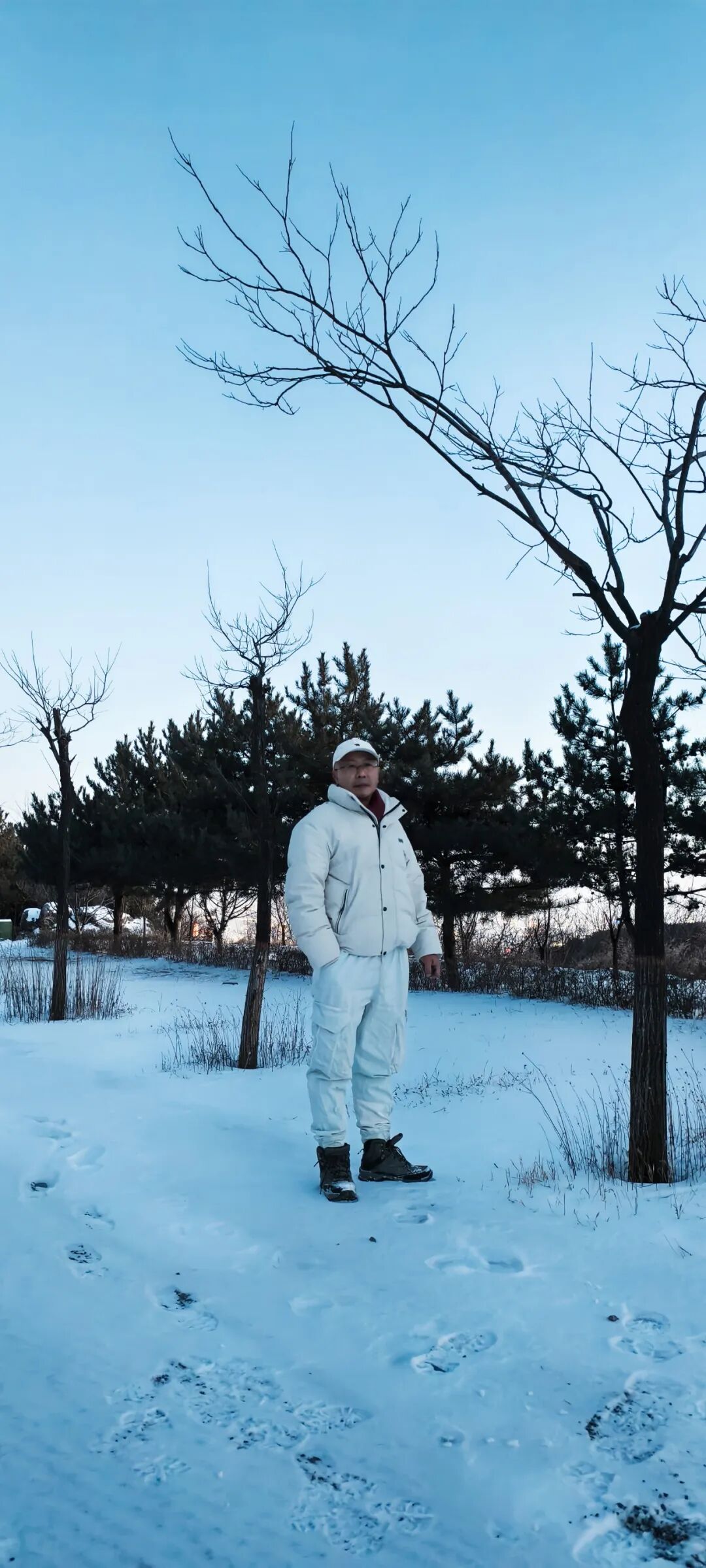 有心過去阻止,走過去又停下,喊聲到喉嚨又咽下。岸邊一堆老頭在看。紅衣大媽大概很享受背著小手在冰上游弋、被岸邊一群老頭熱切地盯著看的感覺。