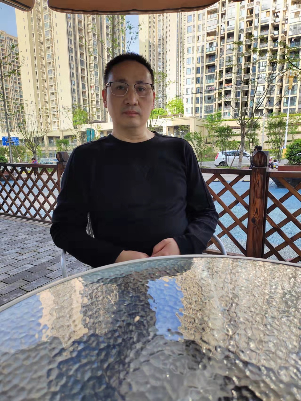 高處無人,折射入舊玻璃的影子