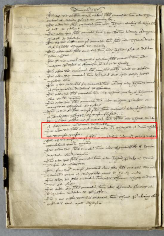 [第26行] It[e]m eodem die si[mi]lis emanavit licna(licencia) inter w[illelmu]m Shaxpere et Anna[m] whateley