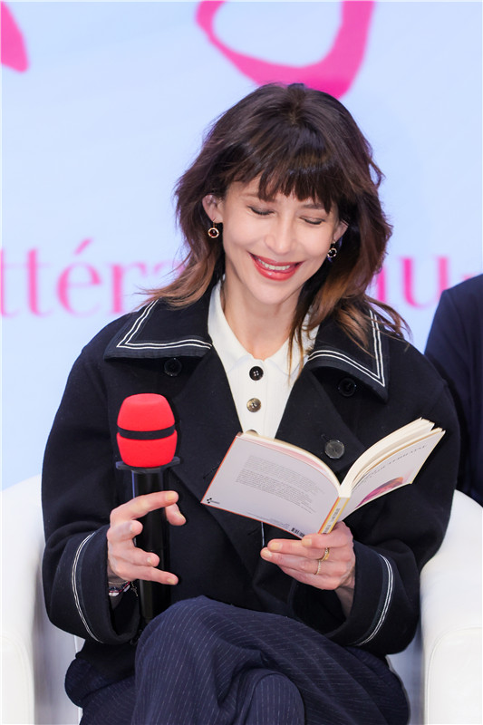 蘇菲·瑪索在現場用法語朗誦《我總是讓一本書攤開在那里》