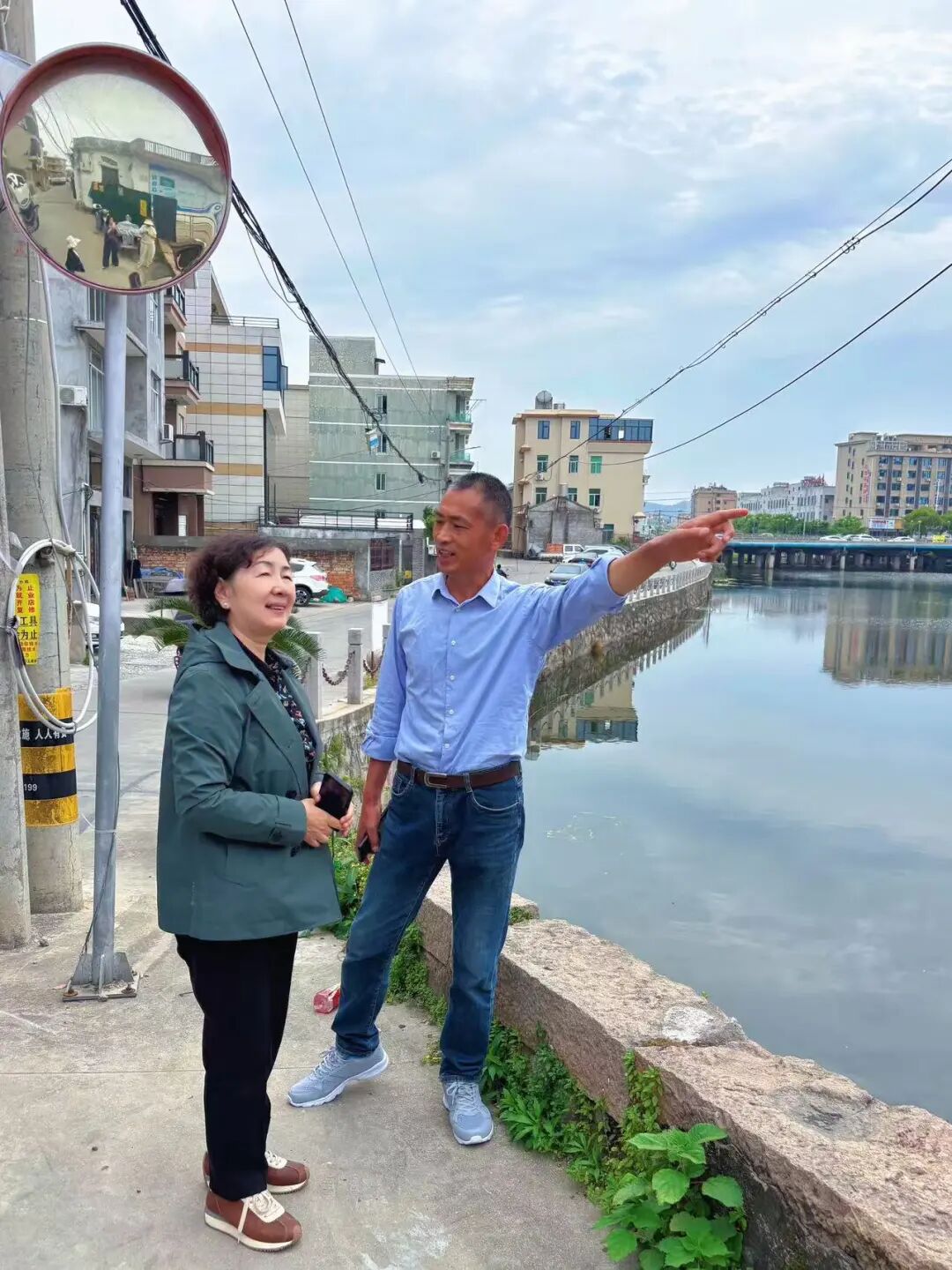 葉梅(左)在浙江臺州采訪。(受訪者供圖)