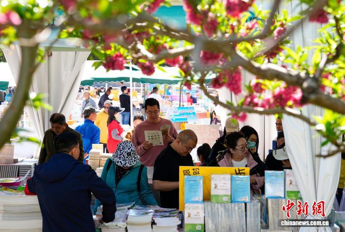 2025年4月22日,以“書香京城 悅讀春天”為主題的2025北京書市正式開啟。圖為市民在朝陽(yáng)公園選購(gòu)圖書。 中新社記者 趙文宇 攝
