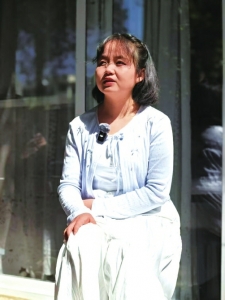 郭夢漪坐在按摩室門口,陽光灑在臉上。