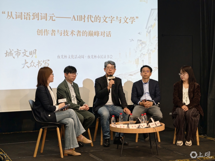 上午的首場活動在位于上海中心的朵云書院旗艦店舉行,創作者與技術者進行了一場巔峰對話,在文學與科技的碰撞中,探討“AI時代的文字與文學”;今天第二場活動于下午在同一地點舉行,新大眾文藝寫作者與夜光杯·左聯·青年寫作計劃學子對談“文字如何從生活中生長出來”;今晚在上圖東館將開啟第三場活動——“從劇場回望經典”全民閱讀特別場。