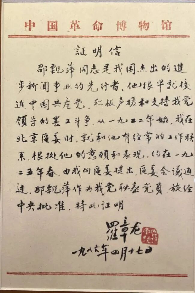 認定邵飄萍中共黨員身份的證明信